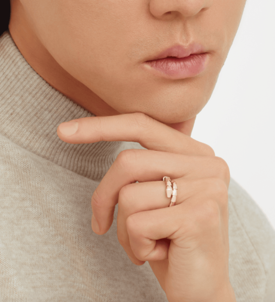 源自意大利的宝格丽,以其大胆创新的设计和色彩运用闻名。宝格丽戒指融合了古典罗马的辉煌与现代设计的精髓,如SERPENTI蛇形系列,以蜿蜒的蛇形为设计灵感,象征着智慧、力量与重生,展现了女性的神秘魅力与独立精神。宝格丽的设计大胆而不失优雅,深受年轻消费者的喜爱。