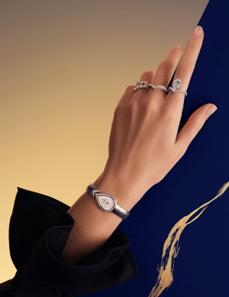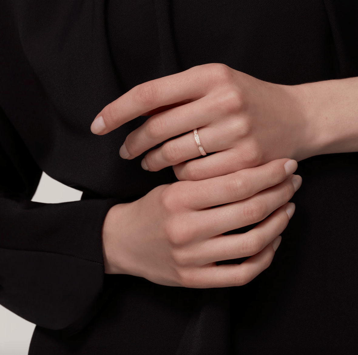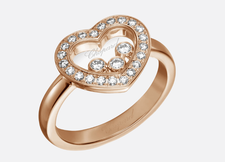 萧邦,自1860年在瑞士创立以来,不仅在高级钟表界享有盛誉,其珠宝设计也同样出色。萧邦戒指以“Happy Diamonds”系列最为人熟知,独特的设计让钻石在两片透明水晶之间自由滑动,闪烁跳跃,象征着快乐和自由。
