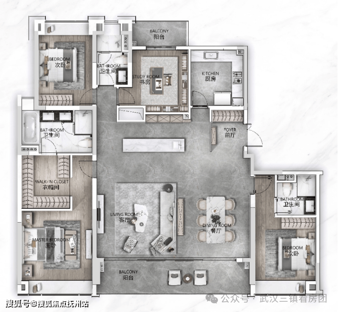 武汉瑞府经典复刻酒店式生活场景,打造延伸的“生活空间”和“主人待客”的礼仪文化。