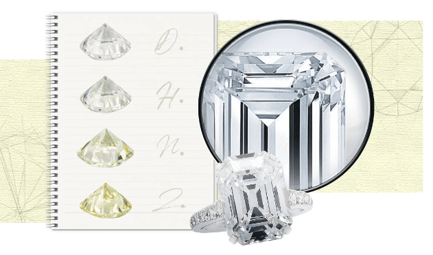 颜色是消费者选购天然钻石最重要的考虑因素之一,也是他们第一眼关注到的东西。当一枚天然钻石由单纯的碳原子组成完美的立方晶体结构时,它是无色的。因此,宝石级天然钻石的颜色评估是建立在无色的基础上。天然钻石的颜色分级系统等级从D级到Z级衡量无色的程度,其中D级对应的是最纯净的无调,Z级对应的是黄色或棕调。当颜色级别从D级向Z级递减时,天然钻石的无色程度和价值都会降低。超出该色阶标尺内正常颜色范围的天然彩色钻石则被称之为彩钻。