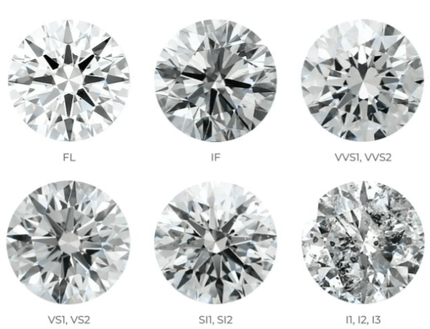 其中,天然钻石4C标准中最复杂的衡量标准之一,是天然钻石的净度。净度等级是指天然钻石净度的可能等级范围。各类分级机构都有推出天然钻石净度分级标准,最常见的天然钻石净度分级标准是由宝石学家创建的,其中包含11个净度等级。天然钻石净度分级范围从FL (无暇级) 到I3 (内含级),宝石学家以10倍放大镜下所看到的内含印记和表面特征来划分天然钻石的净度等级。净度等级越高的天然钻石通常更有价值,但即使是像无瑕级天然钻石这样最稀有的天然钻石,也并不一定是最惊艳的。天然钻石中的内含印记,使其拥有独一无二的内涵与别样的魅力。