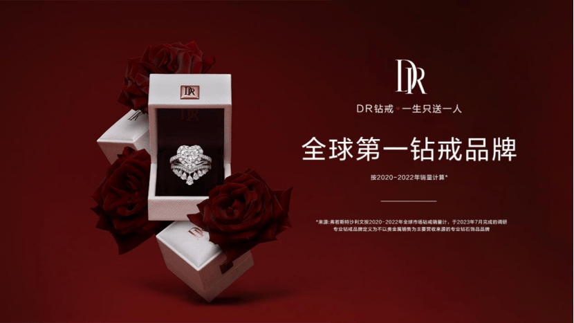 2023年全球知名市场调研机构弗若斯特沙利文经过全球数据调研,数据显示:从2020到2022年,DR钻戒已经连续三年位居全球求婚钻戒销量第一。DR已成为“全球第一求婚钻戒品牌”和“全球第一钻戒品牌”。*。