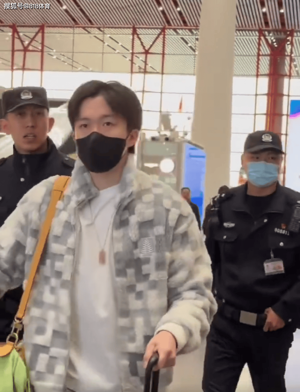 11月26日,国乒队员们从北京出发前往成都,一大早,王楚钦就和队友们一起乘坐大巴抵达北京首都机场。