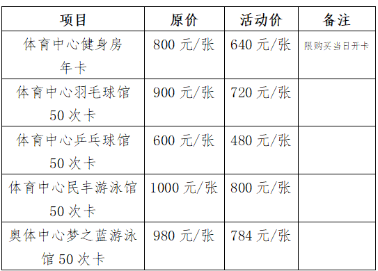 活动期间,广大健身爱好者可登录“宿迁市体育产业健身服务中心”微信小程序或到场馆前台购买,即可享受以下优惠价。