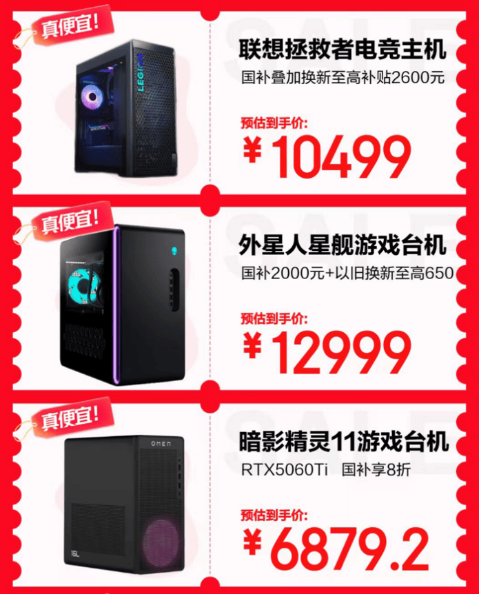 游戏台式机方面,联想拯救者刃7000K电竞主机搭载14代i9处理器加RTX 5070 12G显卡,配备32G DDR5内存,国补叠加换新至高补贴2600元。外星人星舰游戏台机R17,配备水冷散热系统,不仅可以流畅运行《黑神话:悟空》,还可以训练AI大模型,预估到手价12999元。暗影精灵11游戏台机搭配RTX 5060Ti,国补享8折,预估到手价6879.2元,成为性价比之选。
