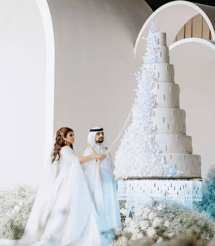 2023年那场耗资千万美元的奢华婚礼,堪称现代版童话故事。玛哈拉身着Rami Al Ali耗时600小时手工缝制的婚纱惊艳全场,裙身上5000颗施华洛世奇水晶与阿拉伯传统纹样在灯光下交相辉映。搭配的Harry Winston钻石项链由18颗水滴形钻石组成,总重超过60克拉,其夺目光彩甚至盖过了婚礼蛋糕上的24K金箔装饰。