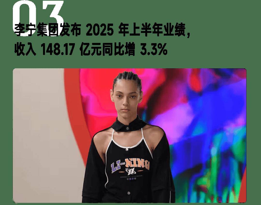 李宁集团公布 2025 年中期业绩显示,报告期内集团收入为 148.17 亿元人民币,同比增长 3.3% 。毛利达 74.15 亿元,同比增长 2.5%,毛利率为 50.0%,较去年同期下降 0.4 个百分点。截至期末,李宁品牌及李宁 YOUNG 销售点合计 7,534 家,较 2024 年底净减 51 家,其中李宁 YOUNG 门店为 1,435 家,较去年底减少 33 家。集团表示,将持续推进 “单品牌、多品类、多渠道” 战略,强化现金流管理,以支撑长期发展。